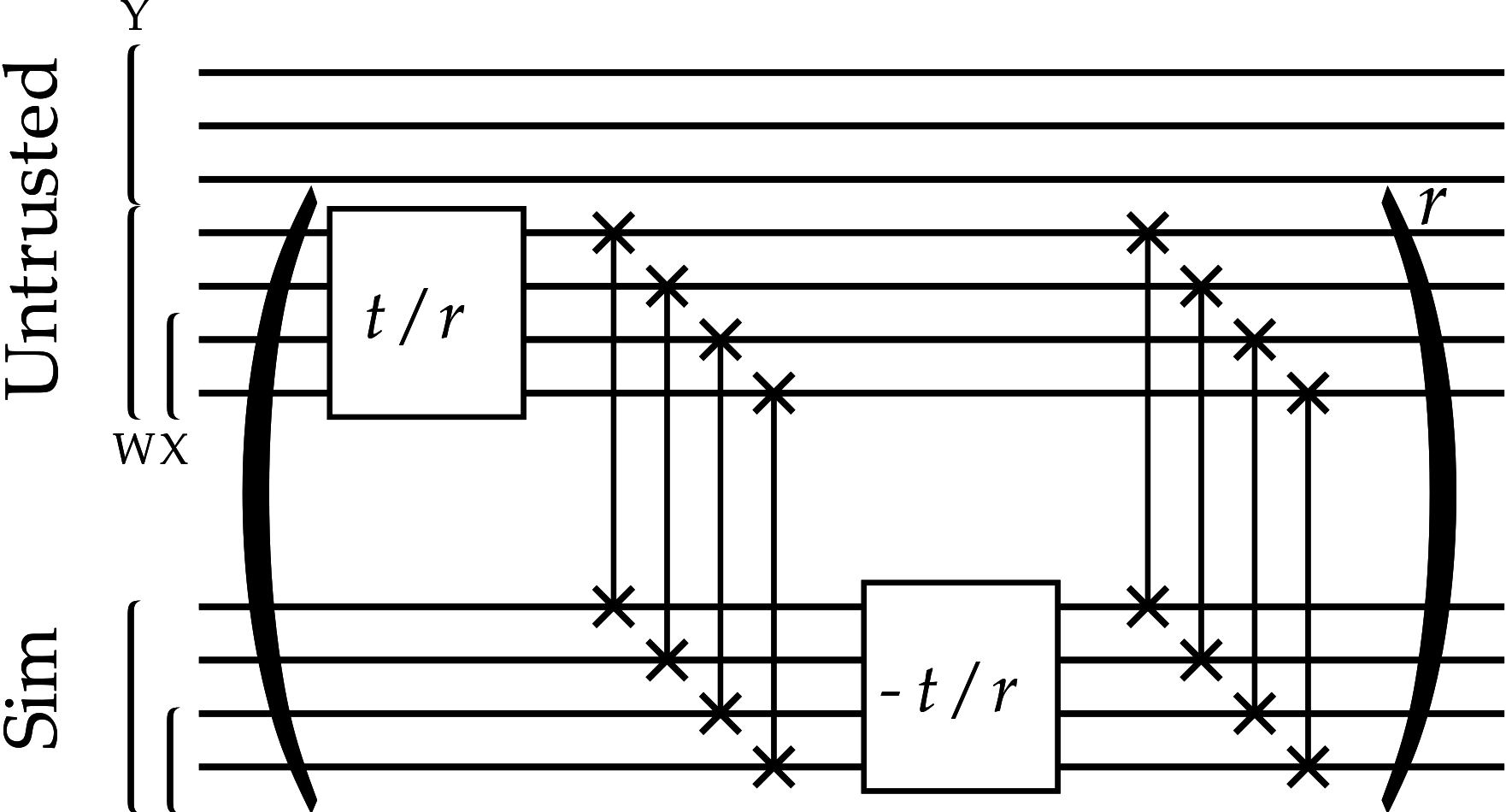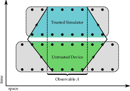50-qubit untrusted device, 8-qubit simulator, 4-qubit observable