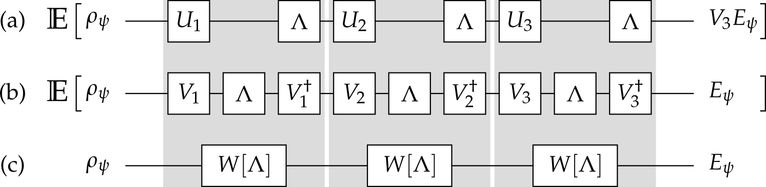 Choosing random sequences of Clifford gates effectively twirls errors.