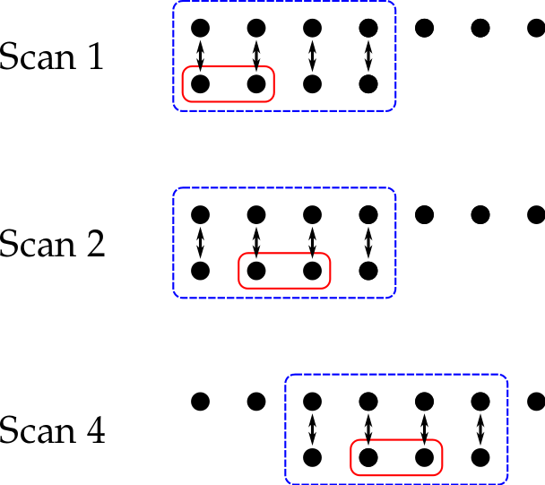 50-qubit untrusted device, 8-qubit simulator, 4-qubit observable, 300 measurements/scan