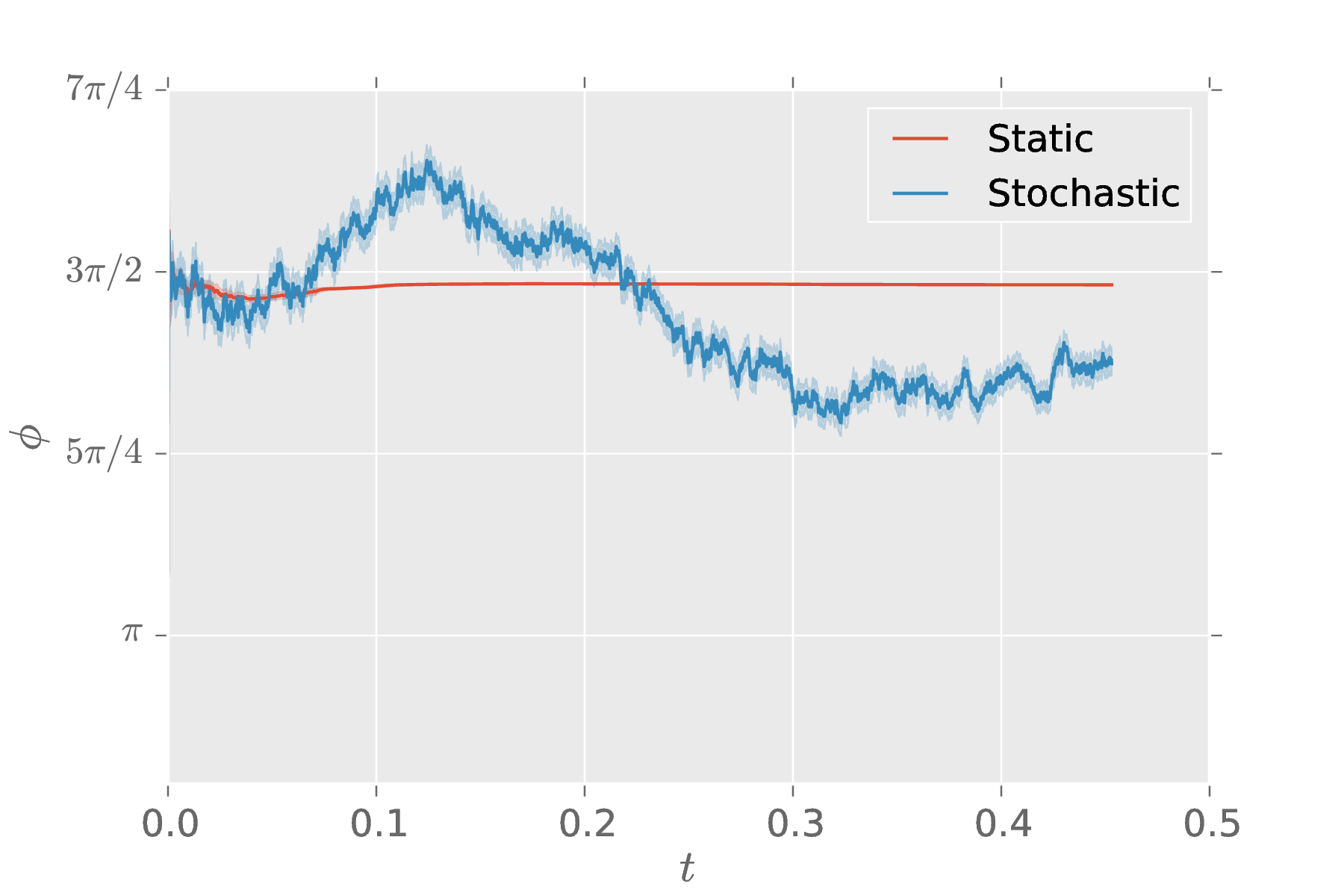 Compare models $\phi \ne \phi(t)$ and $\phi$ following a Markovian Gaussian process.